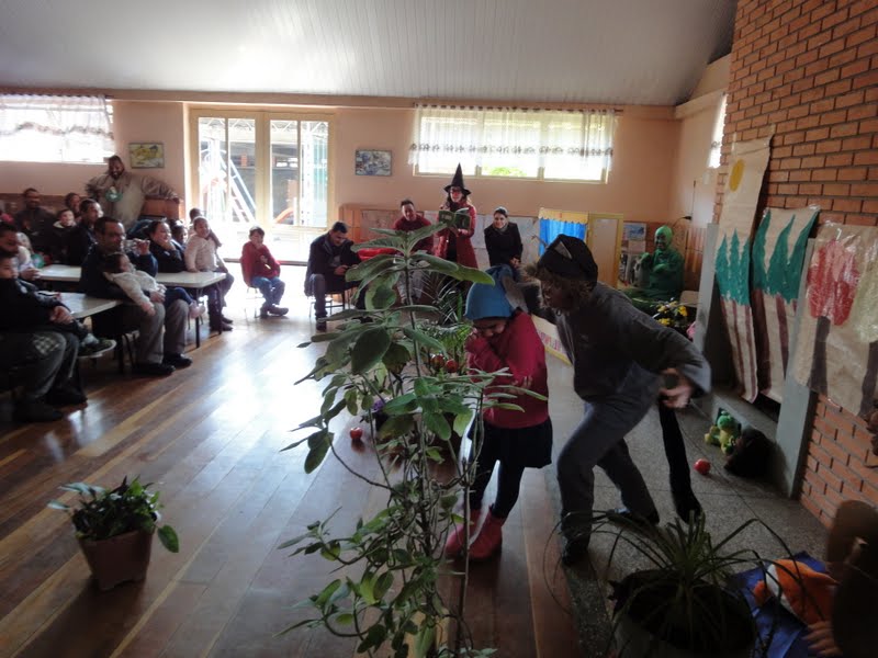 E para encerrar esta divertida manhã, as educadoras juntamente com algumas crianças do Jardim B realizaram uma apresentação de teatro. Os papais deram boas gargalhadas com a história...